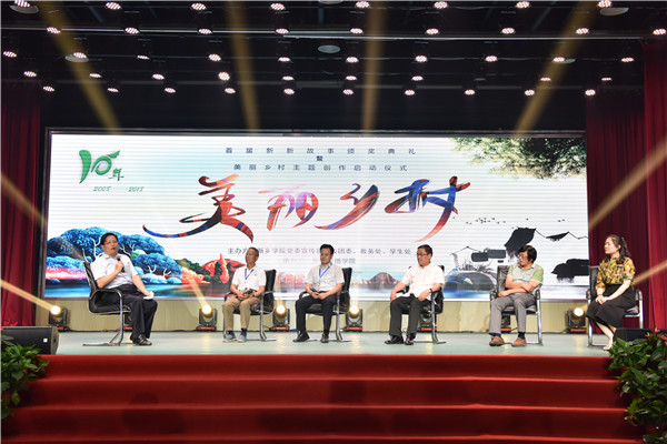 主题论坛结束,校党委书记丁庭选为“美丽乡村”主题创作授旗,新闻传播学院党总支副书记王卫峰和副院长李娟代表学院接过旗帜。随即,伴随着《美丽中国走起来》的欢快旋律,校长刘兴友、新乡广播电视台台长助理张涛、郑保卫教授、焦波导演走向舞台为“美丽乡村”主题创作打板,正式拉开了“美丽乡村”主题创作的序幕,为颁奖典礼和启动仪式画上了完美的句号。