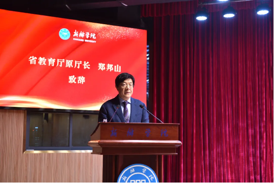 郑邦山在致辞中,饱含深情地分享了对高镇五教育家精神的三点感悟:其一,精神永在——高镇五先生的一生,始终与国家命运同频共振、与教育事业紧密相连;其二,初心永恒——高镇五先生注重“德育为先”,强调教育需培养具有爱国情怀与民族责任感的人才,以毕生教育实践回答了“为谁培养人、培养什么人、怎样培养人”的根本命题;其三,使命永续——新乡学院作为传承高镇五教育家精神的重要阵地,自办学以来,始终秉持“教育要与实际结合、与时代同步”的理念,以服务党和国家需求为使命,深耕地方、服务区域,在应用型人才培养、产教融合、乡村教育振兴等领域取得亮眼成绩。