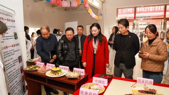 本次美食节以“漫寻六方‘百’味 精研一脉‘食’光”为主题,由食品科学教研室主办,以2022级食品科学与工程专业《食品美学》课程为基础,同时融入了食品科学与工程类各专业各年级学生的创新作品,在李雪华、田金河等专业老师的指导下,同学们实现了专业课程知识的实践转化,最终呈现为一道道具象的美食作品。