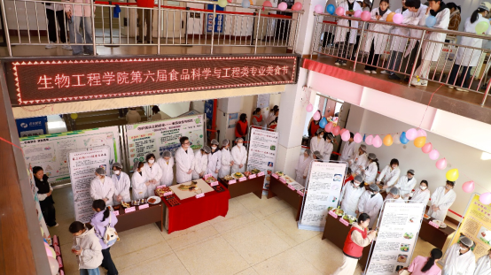 10月21日,生物工程学院第六届食品科学与工程类专业美食节暨学生成果展在A13号楼成功举办。本届美食节得到了校院各级领导的大力支持,党委书记王孝俊,党委副书记宋伟,副校长韩辉、杨钧、张银堂、高雪霞亲临现场指导,生物工程学院师生及兄弟学院近千名师生参加了本次活动。