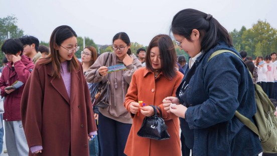 活动中,同学们在自我觉察中释放压力,在团队协作中凝聚力量,在认知挑战中锻炼心智,在创意表达中探索心灵。“丢掉烦恼”通过投掷手中的箭支,与烦恼完成一场仪式化的告别;“纵横天下”“无敌风火轮”“神笔马良”等需要紧密配合的团体挑战活动,极大地考验团队沟通技巧与协作精神;“舒尔特方格”是注意力与反应速度的终极考验,而“口是心非”则有效锻炼了参与者的抗干扰能力和思维灵活性;“OH卡故事接龙”借助潜意识,开启了一场奇妙而有趣的集体叙事,“指尖生花”赋予了平凡的扭扭棒和黏土以创意表达的魔力。