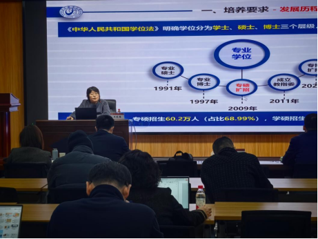 培训会特邀两位知名专家作专题报告。刘宏哲教授以《科学研究与学科建设的协同路径探析》为题,深入剖析了学科建设与科研创新的内在联系,为优化学科布局、提升科研效能提供了新思路。王廷梅教授在《专业型硕士人才培养模式的创新与实践》报告中,系统阐述了专业型硕士培养的创新理念与实践经验,为创新人才培养模式提供了有益借鉴。