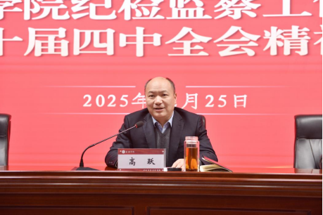 高跃指出,在过去的一年里,大家能够认真学习贯彻党的二十届四中全会精神,学习贯彻习近平法治思想,筑牢信仰之基、绷紧纪律之弦,廉洁从政、担当作为,持续形成风清气正的政治生态,为学校事业发展作出了积极贡献。针对学校进一步深化改革、创新发展、风险防范等工作,他强调指出,一要提高思想认识,增强政治自觉。要善于从政治高度考虑问题,以永远在路上的坚韧和执着,持之以恒推进全面从严治党,坚决把党的自我革命要求落实到位,推进党的作风建设常态化长效化。二要抓好风险防范,强化责任担当。在学校巡审联动工作和安全稳定排查中,发现了一些问题,也暴露出一些不容忽视的风险隐患,这些问题警醒我们,思想教育、纪律规矩时刻不能松懈,要切实提高重大风险防范化解能力,工作中遇到问题特别是一些复杂问题,必须要有办法、会出招、出实招。三要善于聚焦发展,树牢新风正气。要把改革创新作为高质量发展的关键,准确把握纪检监察工作的着力点,担起责任,有所作为。要能够站位发展大局,弘扬正气,传递正能量;要严守纪律,忠诚可靠;要锤炼作风,筑牢防线;要管好自己,带好队伍。