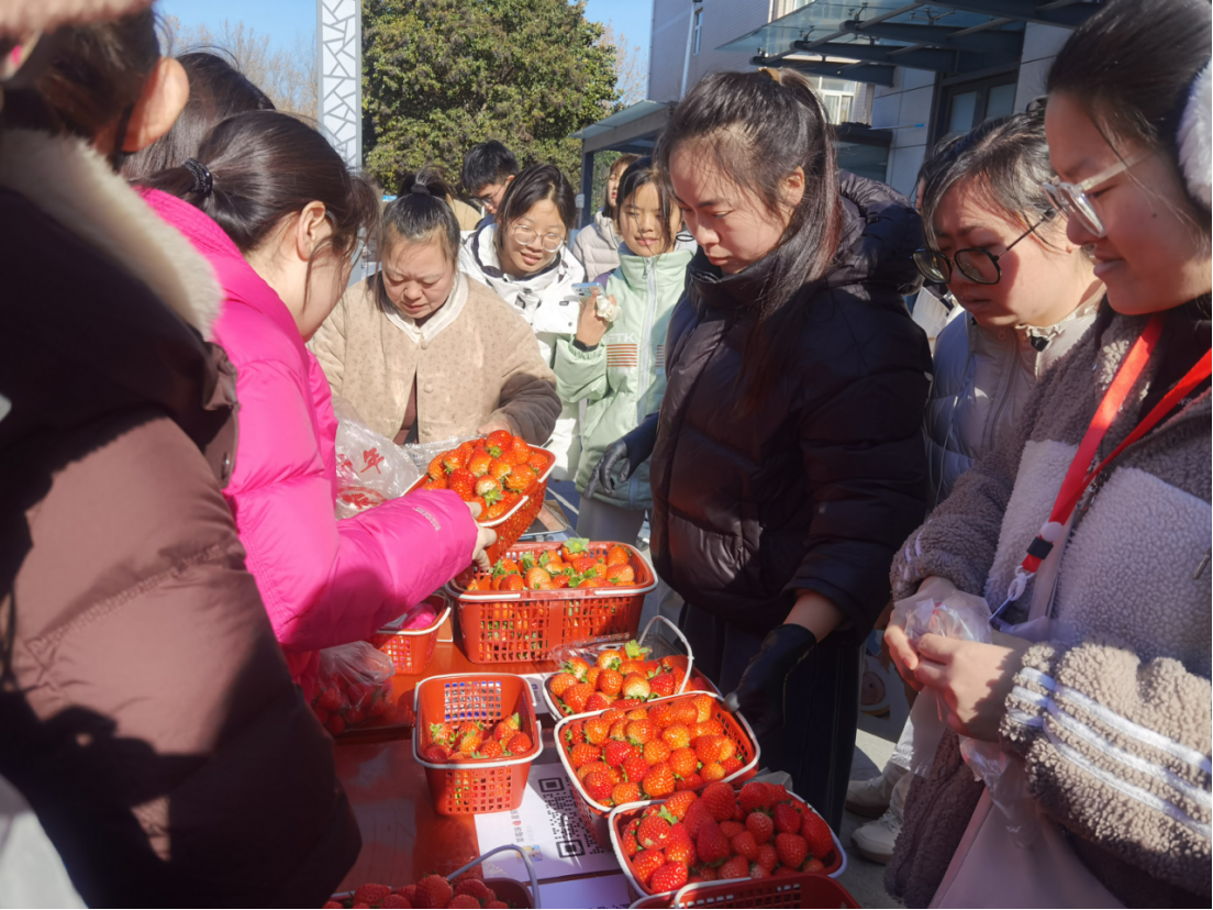 上午天刚蒙蒙亮,新乡学院驻封丘县边庄村第一书记秦昆就带领着商户开始忙碌布展,9时展销节正式拉开帷幕。活动现场,整齐排列的展位上摆满了琳琅满目的特色农产品:香气馥郁的金银花茶、风味独特的封丘卤味、做工精细的手工毛笔、饱满多汁的新鲜草莓、口感醇厚的老式糕点等。这些产品不仅承载着封丘的乡土特色与匠心品质,更蕴含着深厚的封丘地域文化底蕴,每一件都是封丘文化的鲜活载体。参展人员不仅热情详细地向师生介绍产品的产地渊源、核心特色及营养功效,还同步讲解产品背后的文化故事,让师生在了解产品的同时,感受封丘文化的独特魅力。工作人员还贴心设置了试吃、试用环节,让大家直观感受农产品的优良品质。“草莓新鲜又香甜,价格也很实在,既能买到心仪的食材,又能为助农出一份力,还能了解到地道的封丘文化,特别有意义!”正在挑选草莓的同学满脸笑意地说,不少师生驻足品尝后纷纷下单,现场购销氛围热烈有序,处处洋溢着助农惠民的温情与活力。