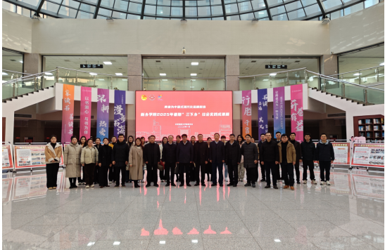 为全面深入总结我校2025年大学生暑期“三下乡”社会实践活动的成效与经验,1月13日下午,校团委在图书馆二楼大厅举办了以“青春为中国式现代化挺膺担当”为主题的社会实践成果展。党委副书记宋伟,党委学工部部长、学生处处长王坤,图书馆党支部书记陈国胜,馆长刘铁男,校团委老师及各学院团委书记一行到现场观展。