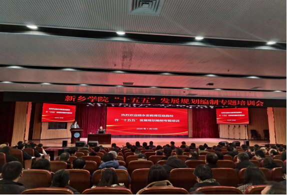 1月16日上午,新乡学院在图书馆南楼文化艺术中心召开“十五五”发展规划编制专题培训会。全体在校校领导、全体中层正、副职干部参加会议。会议由副校长杨钧主持。