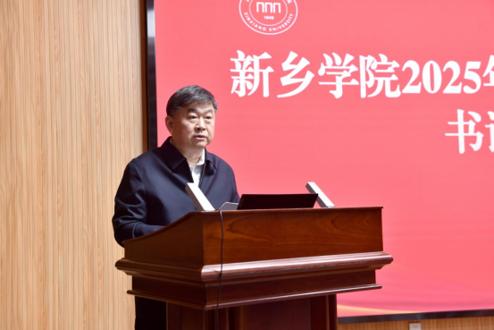 王孝俊传达了2025年度全省高校党委书记抓基层党建述职评议考核工作会议精神,并就如何落实新时代党的建设总要求,进一步提升党建工作水平提出四点要求:一要聚焦凝心铸魂,抓实理论武装,筑牢思想根基。要把学习贯彻习近平新时代中国特色社会主义思想作为首要政治任务,深入贯彻党的二十大和二十届历次全会精神,特别是精准把握习近平总书记考察河南时提出的“两高四着力”要求,推动理论学习往深里走、往心里走、往实里走。二要聚焦强基固本,规范组织运行,建强党员队伍。要牢固树立大抓基层的鲜明导向,持续推进基层党建标准化、规范化建设,扎实深化党建“三级联创”,巩固拓展标杆院系、样板支部创建成果。三要聚焦正风肃纪,深化作风建设,筑牢廉洁防线。要切实履行全面从严治党“第一责任人”职责,始终坚持严的基调、严的措施、严的氛围,坚决筑牢拒腐防变的思想防线和制度防线。四要聚焦融合赋能,突出引领保障,服务中心大局。要坚持围绕中心抓党建、抓好党建促业务,坚决打破“两张皮”壁垒,推动党建工作与学科建设、人才培养、科学研究、社会服务、校园安全等中心工作同谋划、同部署、同推进、同考核,实现“一融双高”。