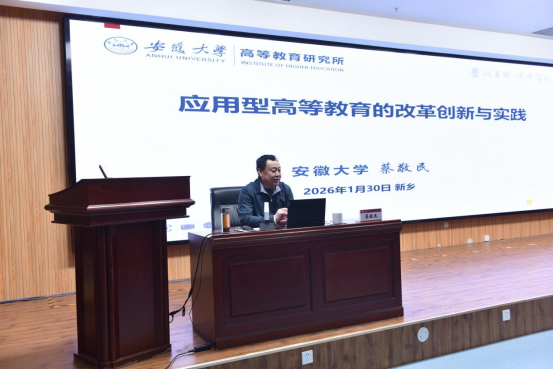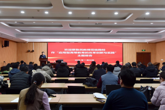 1月30日上午,安徽省人大常委会委员、省人大农业与农村委员会副主任委员,安徽大学原党委书记蔡敬民教授应邀来我校作题为《应用型高等教育的改革创新与实践》的专题报告。校长李广慧主持报告会,校领导班子成员、各学院院长和副院长、相关职能部门班子成员近百人聆听了报告。