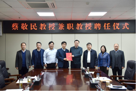 座谈结束后,学校举行了蔡敬民兼职教授聘任仪式,李广慧为蔡敬民颁发聘任证书。