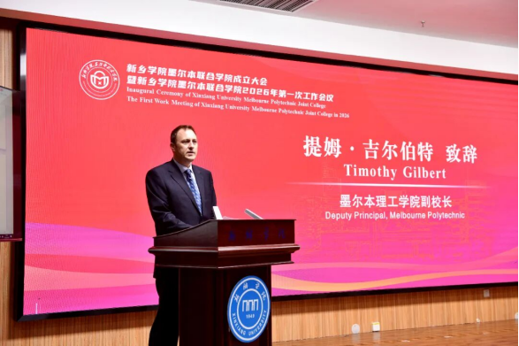提姆・吉尔伯特在致辞中表示,墨尔本理工学院将全力投入优质教育资源、先进课程体系与专业师资力量,与新乡学院携手共建联合学院,共同培养具有国际视野、实践能力的高素质人才,共同推动中澳教育合作不断取得新进展。
