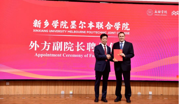 李广慧就联合学院本学期重点工作作出部署,从制度建设、硬件建设、专业建设、招生宣传、教学管理、财务管理等六个方面明确了任务路径,确保学院实现高质量开局。大会举行聘任仪式,李广慧为提姆・吉尔伯特颁发了新乡学院墨尔本联合学院外方副院长聘书。