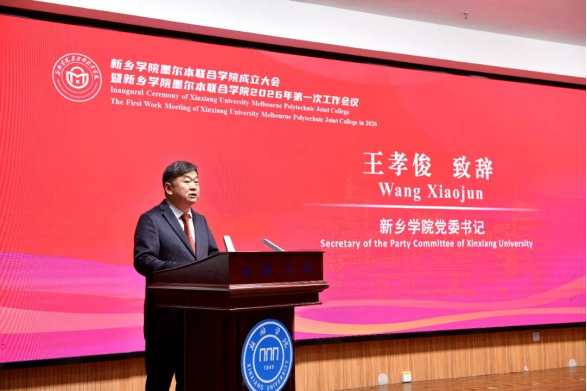 王孝俊在致辞中表示,在中澳两国教育部门和两校的共同努力下,新乡学院墨尔本联合学院成功获批设立。这是新乡学院与墨尔本理工学院携手合作的里程碑,是中澳教育交流合作的重要成果,更是学校落实教育强国、教育强省建设部署、服务国家高水平对外开放战略的生动实践。新乡学院将以此为契机,秉持“合作(Cooperation)、育人(Cultivation)、创新(Creation)”的“3C”工作理念,全力打造一流中外合作办学平台,深化与墨尔本理工学院的全方位合作,聚焦人才培养、学科建设、师资交流等重点领域,打造特色鲜明、质量一流的中外合作办学品牌,为区域经济社会发展与中澳人文交流贡献力量。