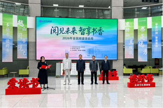 在第31个“4·23世界读书日”来临之际,为深入贯彻落实《全民阅读促进条例》要求,持续深化书香校园建设,充分发挥高校图书馆文化育人、立德树人核心职能,4月20日,由图书馆、校团委联合主办的新乡学院2026年“阅见未来・智享书香”全民阅读活动周启动仪式在图书馆举行。图书馆党支部书记陈国胜、图书馆馆长刘铁男、校团委副书记李春春、图书馆副馆长霍磊等领导出席仪式,本次启动仪式由图书馆副馆长苏红英主持。
