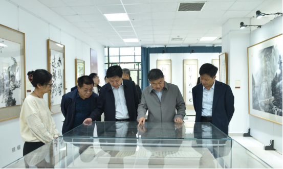 调研组实地走访了我校教育科学学院电子书法教室、国家语言文字推广基地、中原农业文化遗产数智应用实验室、国家产教融合大楼及现代化服务业数智化赋能研究中心实践基地。在书画展厅,调研组细致观摩书画作品,感受校园文化建设与语言文字艺术融合成果;走进教育科学学院电子书法教室,深入了解学校在传统书法教育数字化、语言文字教学创新方面的实践探索;在人文学院与3D打印学院,调研组重点查看农业文化遗产数字化保护、数智技术融合应用等工作进展,对学校依托学科优势开展文化遗产研究与技术成果转化的做法给予肯定。最后,调研组前往国家产教融合大楼,实地走访现代化服务业数智化赋能研究中心实践基地,详细了解学校产教融合、校地协同发展的推进成效。各科研平台负责人就平台研究方向、团队建设、成果转化、社会服务等进行了现场汇报。