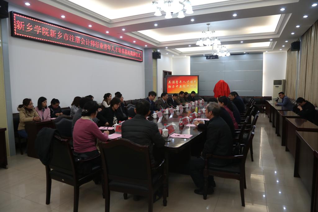 2月28日上午,新乡市注册会计师行业青年人才培养基地揭牌仪式在我校行政楼第一会议室顺利举行,新乡市注册会计师行业青年人才培养基地正式落户我校。校党委书记丁庭选,副校长吴中,河南省注册会计师协会秘书长张连升、副秘书长崔延铮,新乡市财政局局长荆汝大、副局长苏建平,新乡市注册会计师协会会长闫观斌,共青团新乡市委书记王旸、副书记李瑞南,新乡市注册会计师协会秘书长史大伟,河南中新会计师事务所有限公司董事长冯顺利,新乡巨中元会计师事务所有限责任公司董事长郭淑芳,河南正源会计师事务所有限责任公司董事长李化彬,商学院党总支书记翟江波、院长马光华、党总支副书记张胜利、副院长韩楠及商学院会计学专业教师代表出席此次揭牌仪式。会议由副校长吴中主持。