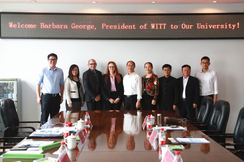 9月28日,新西兰塔拉纳基西部理工学院校长Barbara George、副校长Glen West、华仁国际教育科技有限公司常务副总裁靳旖、事业发展规划部总经理魏尧一行4人来访我校。校长刘兴友、副校长陈业宏、外事处处长李萍、国际教育与交流学院院长周勇、副院长云得煜等相关人员参加了会谈。双方分别介绍了各自学校的办学历史与现状,并就交通工程、机械设计制造及其自动化本科专业中外合作办学项目相关事宜进行了深入探讨,目的在于进一步增进了解,推进项目合作。