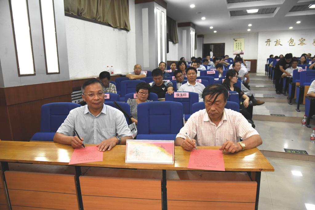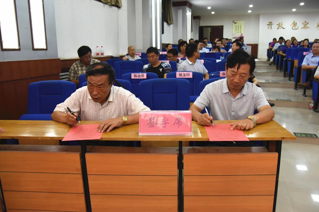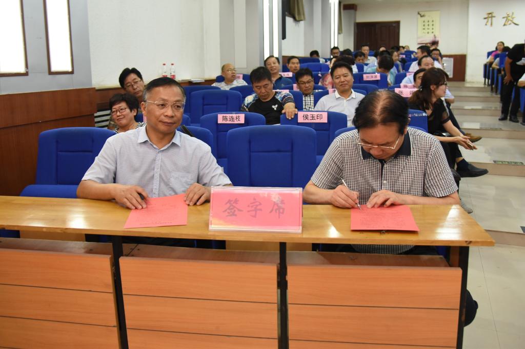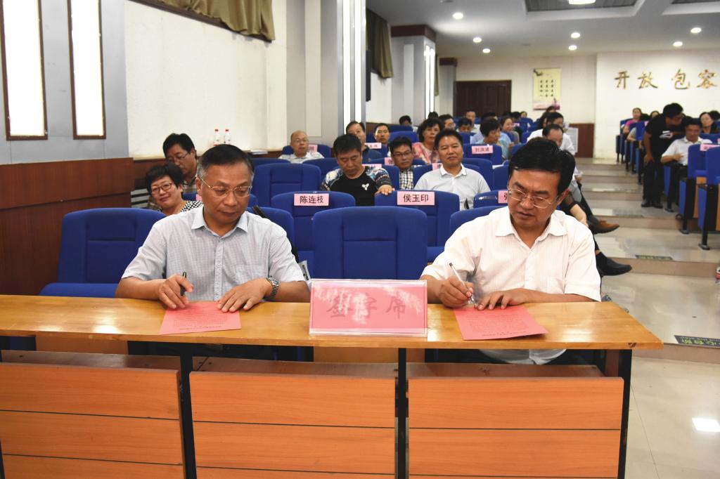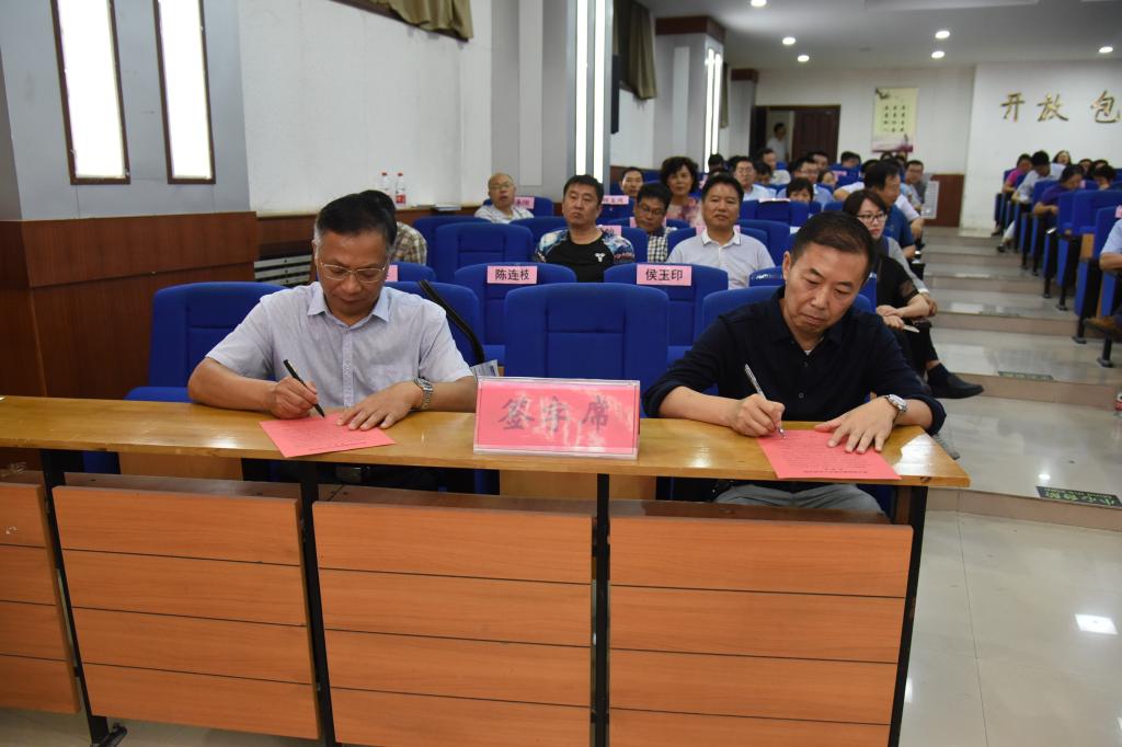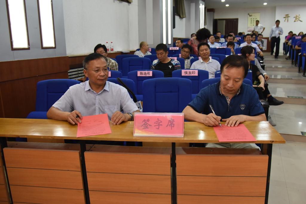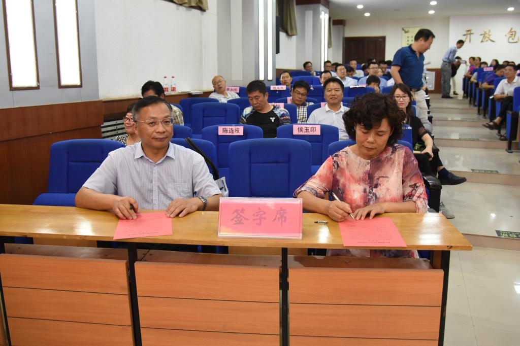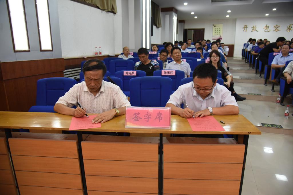 随后,党委书记丁庭选同党委副书记陈贞忠、党委副书记、工会主席阎宏斌,纪委书记贺杰及各党总支(直属党支部)书记代表党群部门党总支书记段虎、行政部门第一党总支书记程玉良、外国语学院党总支书记郑小红、数学与信息科学学院书记刘洪波分别签订《新乡学院意识形态工作责任制承诺书》;党委副书记陈贞忠同宣传部长侯玉印、团委书记苏辉签订承诺书。
