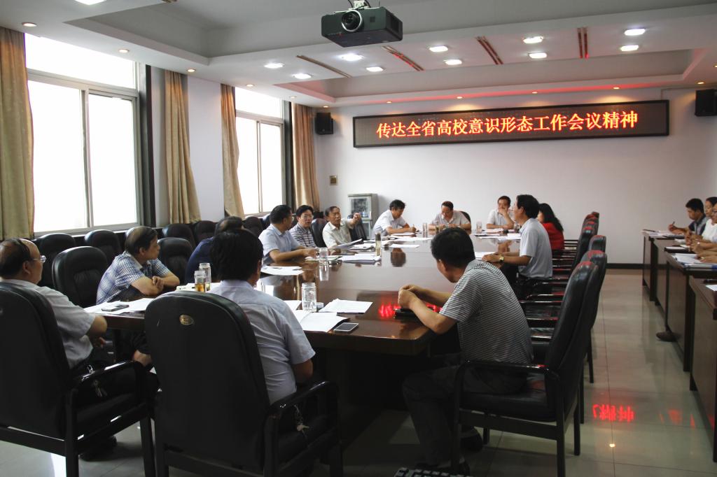 下午,我校召开党委会,学习传达全省意识形态工作会议精神。全体校领导,相关职能部门负责人参加学习。会议由党委书记丁庭选主持。