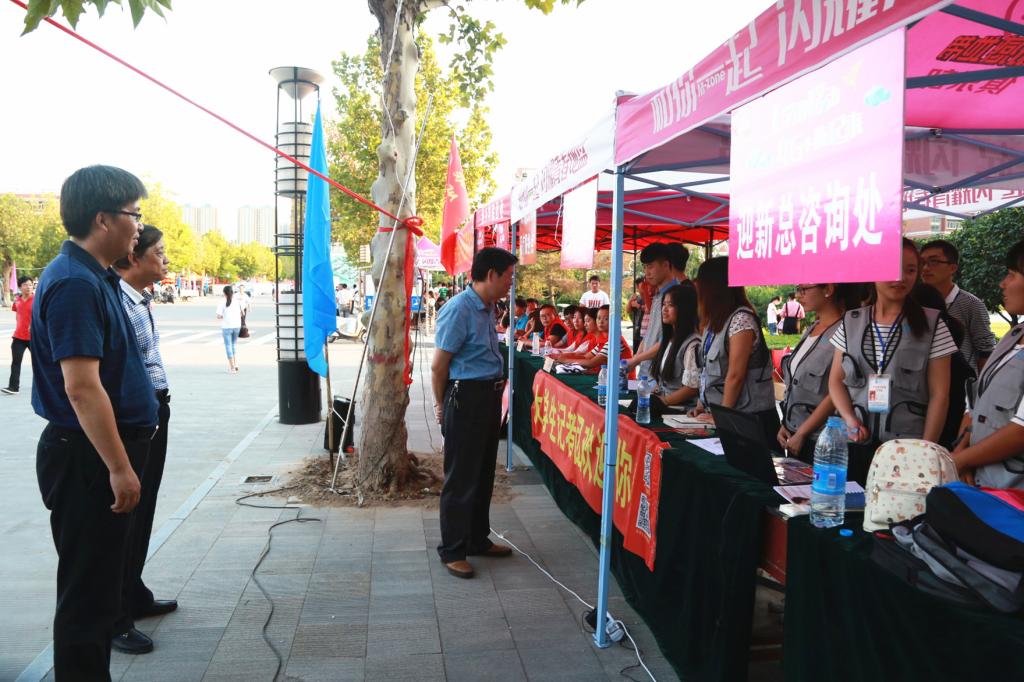 9月10日,校长刘兴友、副校长刘翔在学生处、团委等部门负责人的陪同下,先后来到院系新生报到处,青联、学生会、大学生记者团的联合服务站,学生寝室楼检查指导工作,慰问新生、新生家长和迎新工作人员。