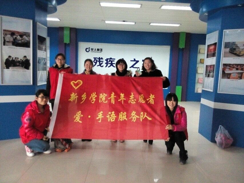 校青联“爱·手语”志愿者服务队成立于2009年11月,现隶属于青年志愿者联合会的项目部门,在青年志愿者联合会对内外的各项公益活动中扮演着重要角色。“爱·手语”志愿者服务队成立之初,以教授通俗易懂的手语歌曲为主,随着服务队的发展壮大,又增设了教授手语日常用语环节,并于每周的固定时间对全校师生进行手语培训等内容。“爱·手语”志愿者服务队经常前往其他高校交流学习,借鉴手语表达技巧,并与新乡市周边一些盲聋哑学校建立长期联系,赴盲聋哑学校开展一系列关爱盲聋哑孩子的爱心志愿服务活动,得到了盲聋哑学校的认可及社会各界人士的广泛关注。青联爱手语服务队不仅希望把手语带给每一个喜欢学习它的人,更致力于让每一个人盲聋哑孩子可以有和正常人交流的机会,帮助孩子们走出残疾的阴影,融入正常人的生活,感受社会的关爱和温暖。