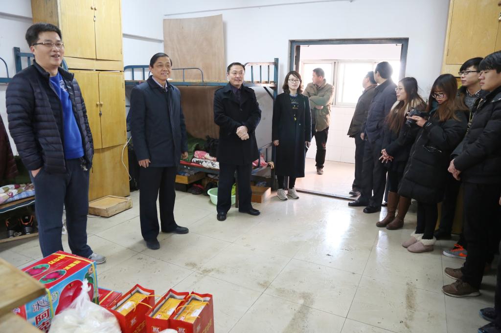 2月7日,农历大年除夕。上午8点30分,副校长刘翔与校办、学生处、后勤管理处、保卫处、外事处等部门领导同志一道,亲切看望慰问了假期里仍坚守在工作岗位一线的员工及留校勤工助学的贫困学生,向他们送上春节的问候,对他们坚守岗位辛勤工作表示亲切慰问,并通过他们向学校所有寒假期间仍然坚持在一线工作的人员拜年。