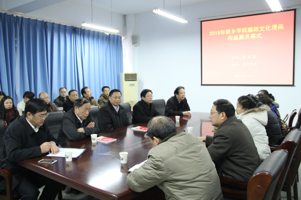 最后,党委书记丁庭选宣布2016年新乡学院廉政文化漫画作品展开幕。随后与会校领导和纪委全体工作人员、各总支书记、部分艺术学院师生一起仔细观看了展出的漫画作品并留言肯定和鼓励。