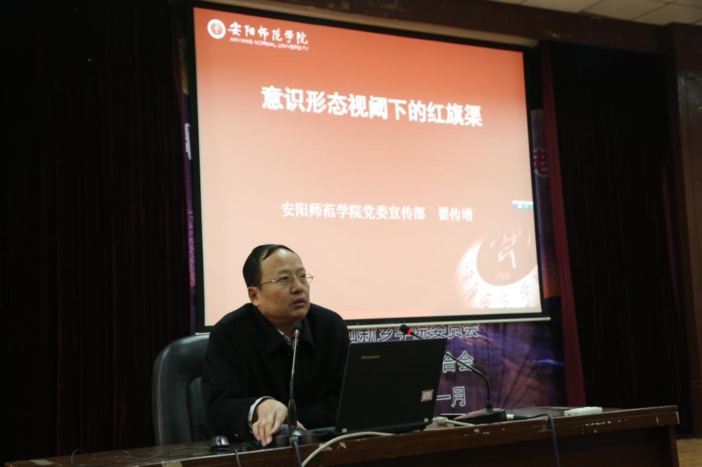 下午,应我校宣传部、科研处和图书馆邀请,安阳师范学院宣传部部长翟传增教授在A01号楼报告厅做了题为《意识形态视阈下的红旗渠》的学术报告。报告会由图书馆馆长李喜仁主持,我校各院系团总支书记、辅导员和学生代表聆听了报告。