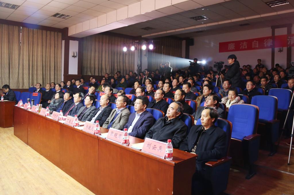 党委书记丁庭选代表学校致欢迎辞并作重要讲话。丁书记首先介绍了新乡学院升本八年来所取得的主要成绩和新乡学院未来发展蓝图。他指出,成绩的取得以及新的美好蓝图的实现,离不开各级党委、政府的大力支持,离不开社会各界和兄弟高校的大力帮助,更离不开学校历届党委行政班子正确领导和全校师生的奋斗拼搏,领导干部在其中起着至关重要的作用。我们要把此次廉政警示教育和“三严三实”专题教育紧密衔接起来,深刻领会“严以用权”的基本要求,按照总书记严以用权的“十个要求”,努力做“心中有党、心中有民、心中有责、心中有戒”的“四有”好干部,在新乡学院的发展新征程中再铸新辉煌!