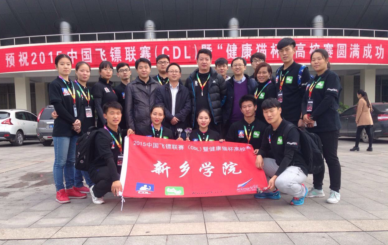 飞镖运动是近年来比较流行的一种新兴体育项目,社会各界参与人员原来越多。我校飞镖队自今年成立以来,在校团委和体育系的共同努力下,经过体育系岳贞淑和李冰老师的悉心指导,已经在业界小有名气。这次2015年中国飞镖联赛(CDL)高校赛是由国家体育总局社会体育指导中心、中国飞镖协会、武汉市体育局、华中师范大学联合主办。我校选派了15名师生镖手组成的飞镖队出战本次比赛,与华中师范大学、武汉大学、华中科技大学等来自全国各地46所高校代表队一千多名师生,在男子、女子组个人高分赛、减分赛、魁柯特以及男女混合个人赛等9个项目上进行角逐。比赛期间,校团委书记苏辉、副书记田文强前往比赛现场积极组织参赛。