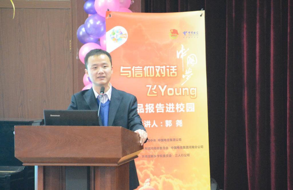 ,在我校A01-114报告厅成功举办了团中央“与信仰对话飞YONG”专场报告会,报告由我校优秀毕业生郭尧主讲。校团委副书记周宁主持,团委老师、主要学生干部及院系学生代表参加了报告会。