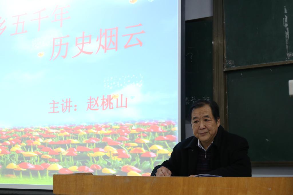 下午,由中原文化研究院副院长兼秘书长赵桃山主讲的“新乡五千年历史烟云”主题讲座在A01号楼0513举行。讲座由文学院副院长左攀峰主持,文学院近200名师生聆听了讲座。