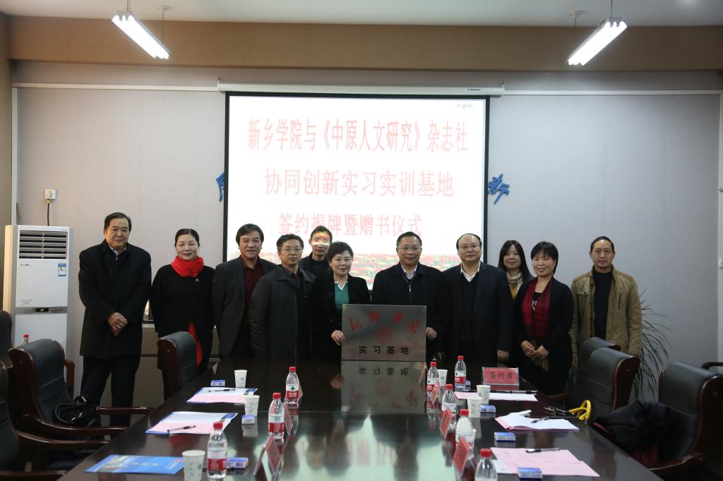 下午,我校与《中原人文研究》杂志社协同创新实习实训基地签约暨赠书仪式在文学院会议室举行。新乡市副市长李瑞霞,民进新乡市委副主委戴宪起、余涵、王伟,中原文化艺术研究院副院长赵桃山,校党委书记丁庭选,副校长杨士斌,历史与社会发展学院院长李景旺,统战部部长韩辉,教务处副处长聂好春及文学院全体班子成员和部分教师代表出席了仪式。