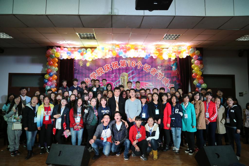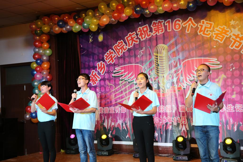 晚,由我校党委宣传部、《新乡学院报》编辑部主办,大学生记者团承办的庆祝全国第16个记者节晚会在A01号楼报告厅开演。校党委副书记陈贞忠,副校长杨士斌,党委宣传部部长侯玉印,副部长骆云飞、张栋京,宣传部各位老师以及兄弟院校的校园学生记者代表一同观看了演出。
