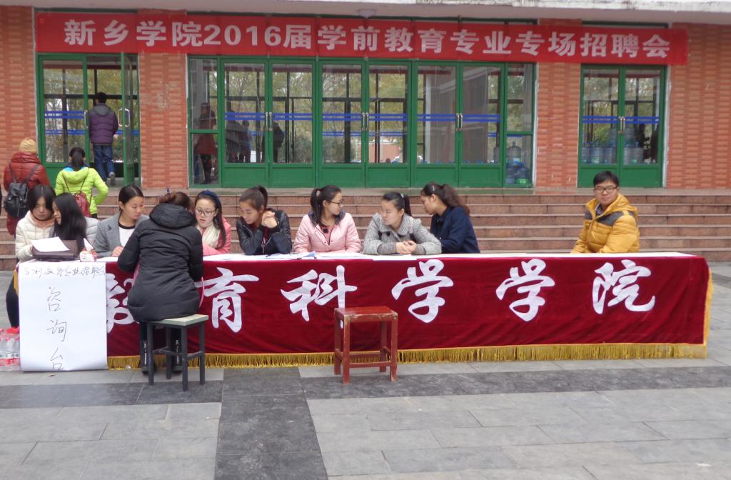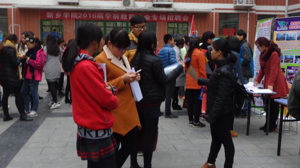 11月10日下午,教育科学学院举办了2016届学前教育专业毕业生专场招聘会。此次招聘会共有23家幼儿园和早教机构到场,共提供工作岗位487个,有234名应届毕业生参加了此次招聘会。