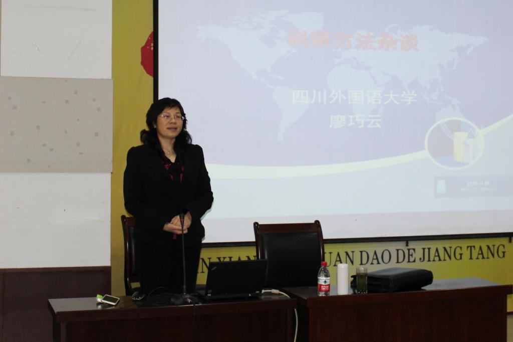上午,应我校外国语学院的邀请,全国知名语言学家、国务院特殊贡献专家、河南大学博士生导师徐盛桓教授与四川外国语大学教务处处长、博士生导师廖巧云教授在A05号报告厅做了关于科研、教改的学术报告。报告会由外国语学院院长刘守平主持,外国语学院、大学外语部教师及部分本科生聆听了报告。