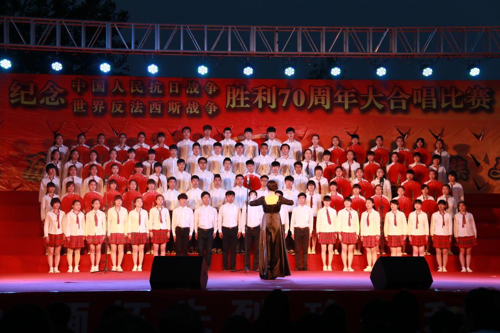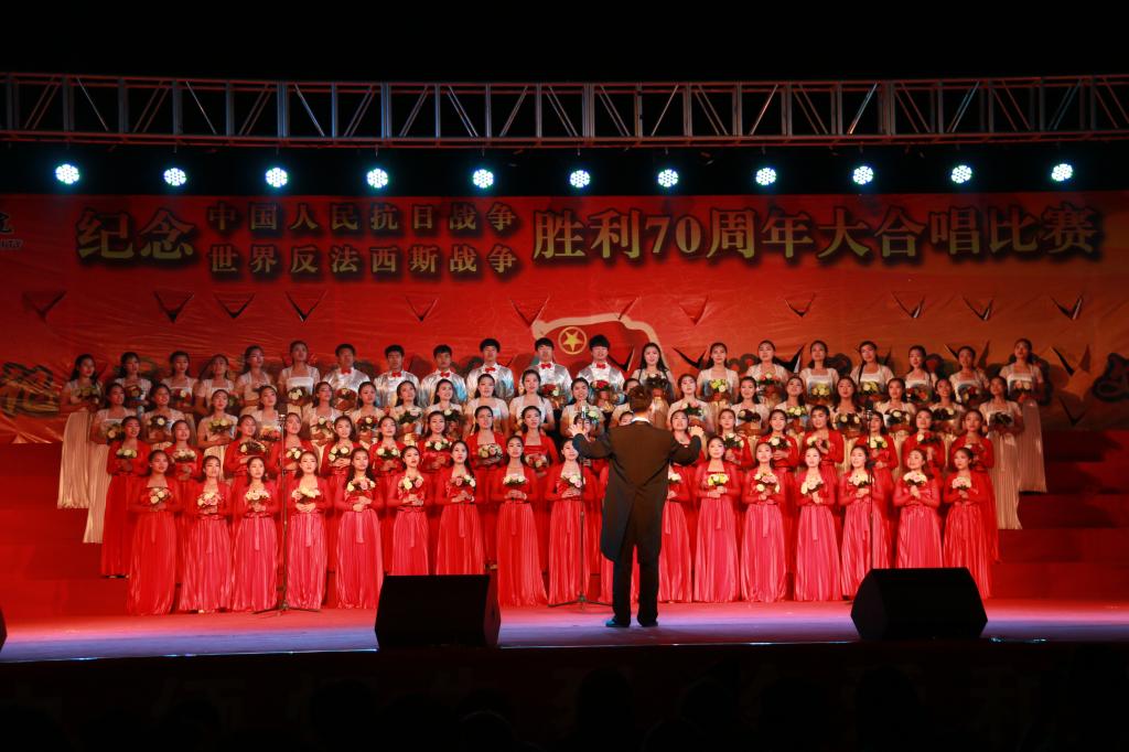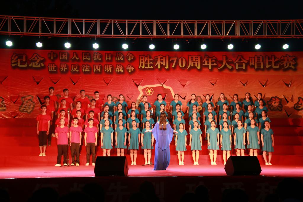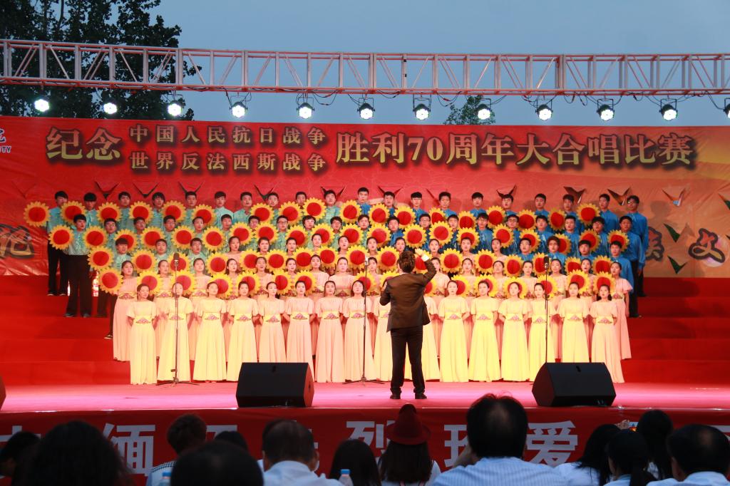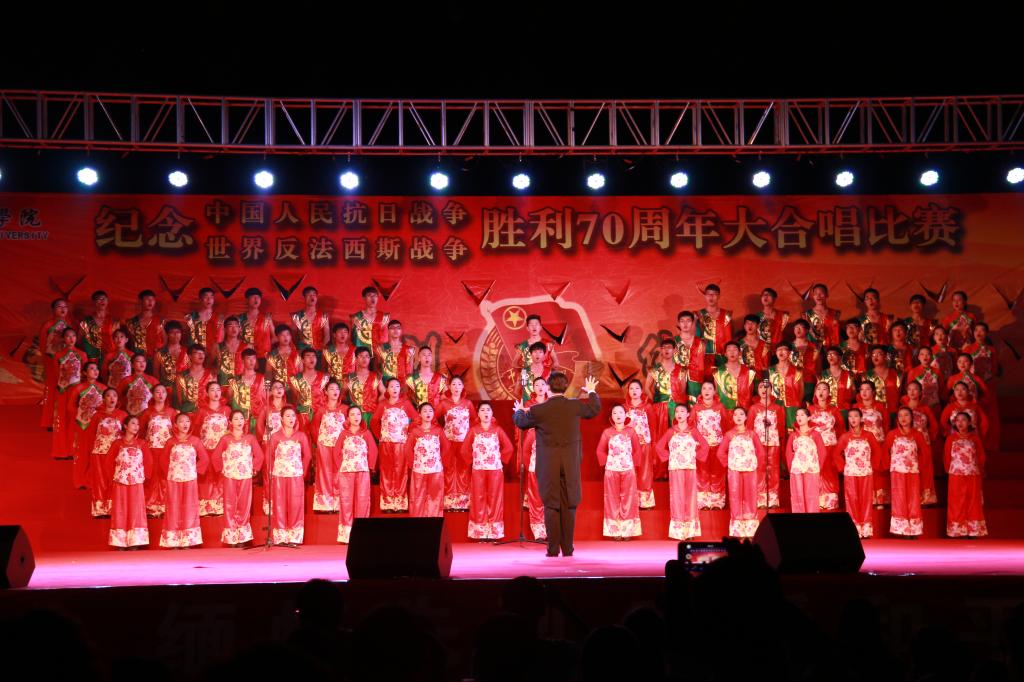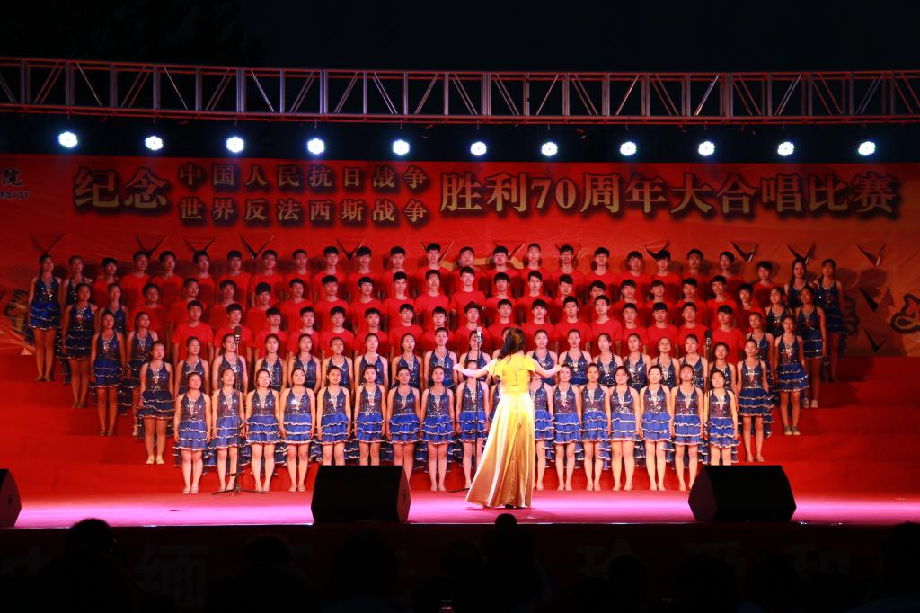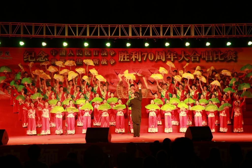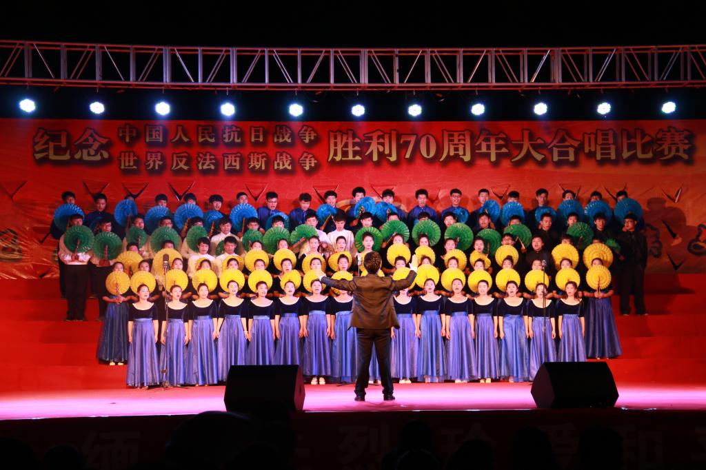 表彰大会结束后,“纪念中国人民抗日战争暨世界反法西斯战争胜利70周年”大合唱比赛盛大开幕。我校骆云飞、池小青、田亮、王东方、孔庆廷、王艳红、陈健老师担任大赛评委。
