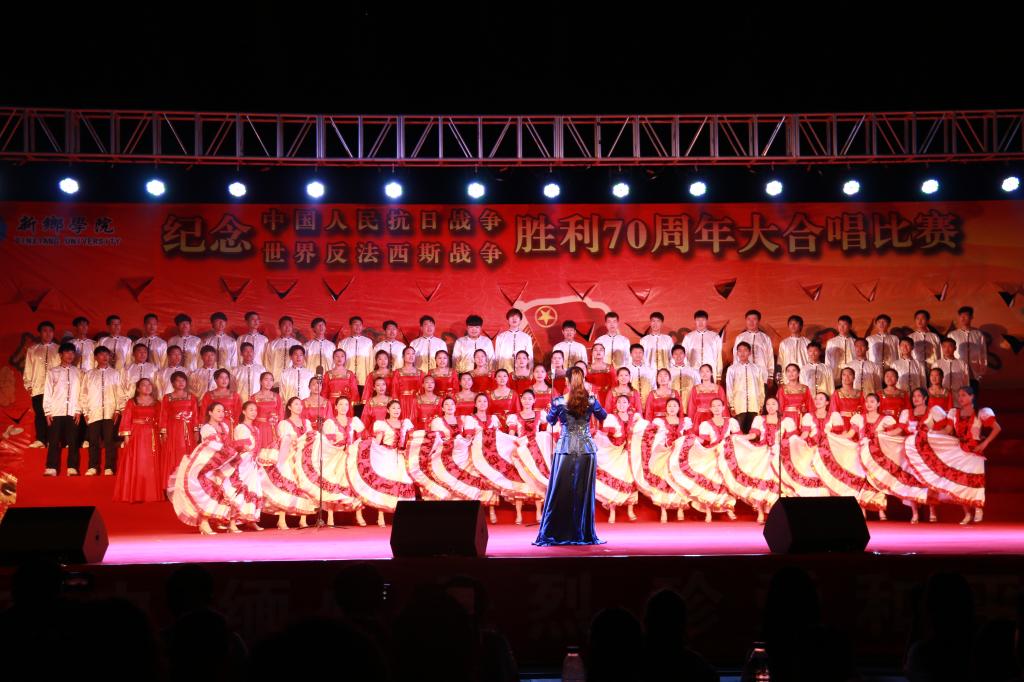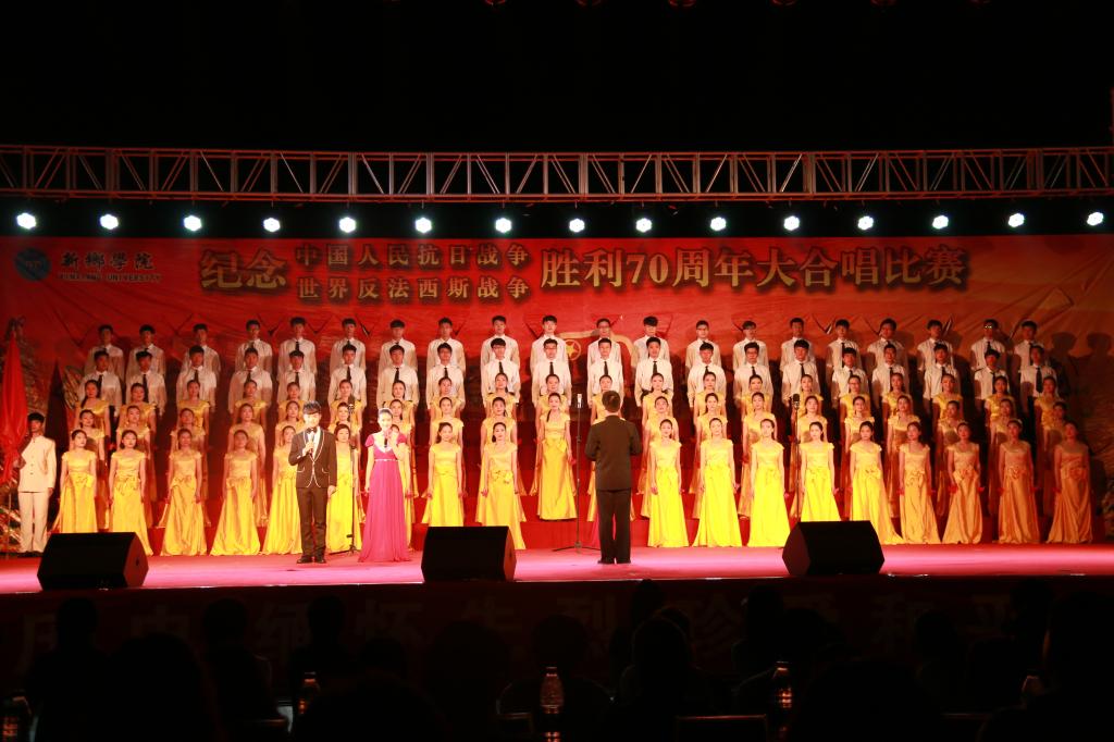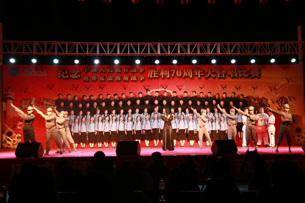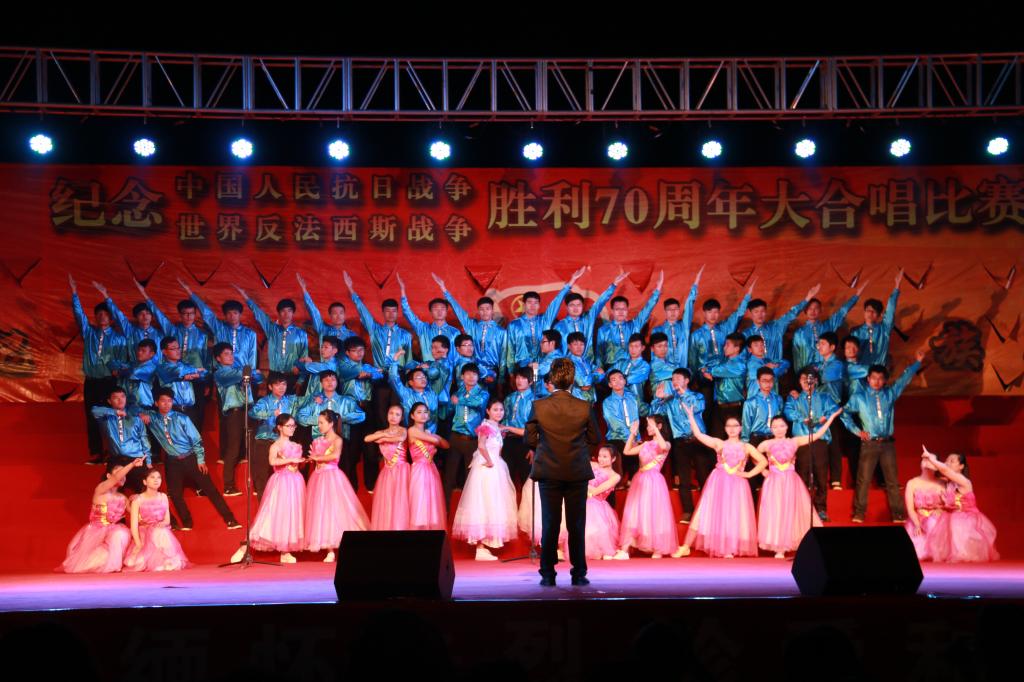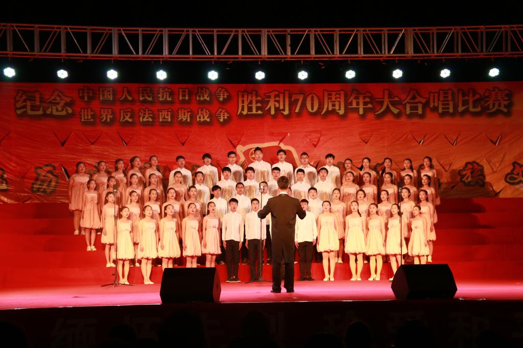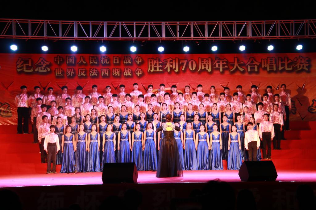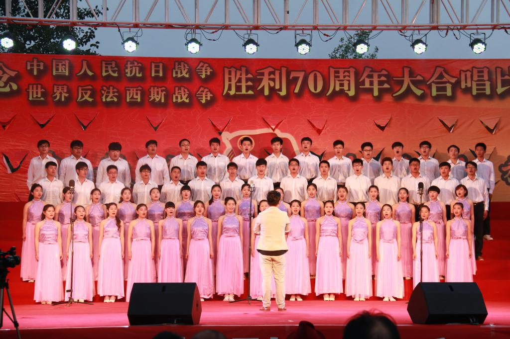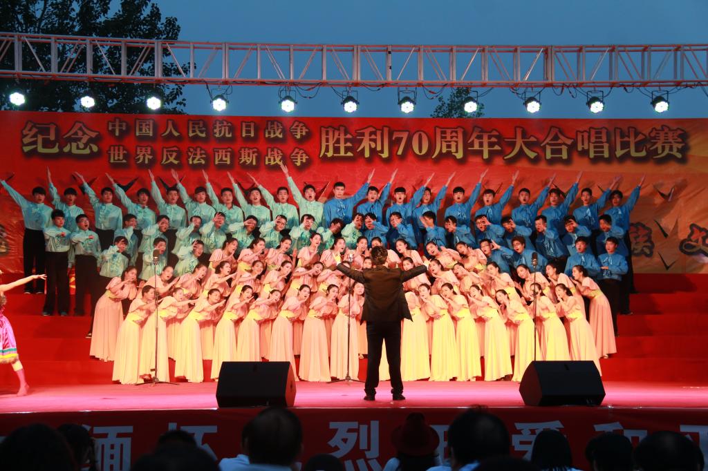 表彰大会结束后,“纪念中国人民抗日战争暨世界反法西斯战争胜利70周年”大合唱比赛盛大开幕。我校骆云飞、池小青、田亮、王东方、孔庆廷、王艳红、陈健老师担任大赛评委。