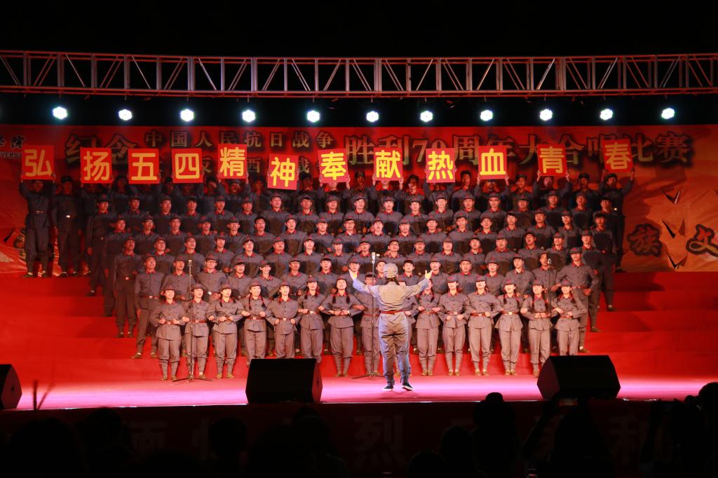 铭记历史教训,传承民族文化。5月5日晚,我校“五四”表彰大会暨“纪念中国人民抗日战争暨世界反法西斯战争胜利70周年”大合唱比赛在西区文化广场隆重举行。校党委副书记陈贞忠,党委副书记、工会主席阎宏斌,副校长吴中、刘翔、陈业宏及相关部门和院系领导出席表彰大会并观看比赛。表彰大会由学工部部长、学生处处长、团委书记欧阳豫樊主持。