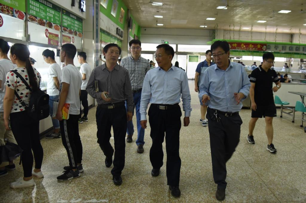 为贯彻落实我校2017年安全稳定工作会议精神,真正把安全工作落在实处,进一步加强学校食品安全的监督管理,确保师生饮食安全,5月25日上午党委书记丁庭选带领宣传部部长侯玉印、后勤管理处处长牛长海、党办工作人员等一行深入我校第一、二学生餐厅进行食品安全卫生工作检查,后勤管理处副处长张鑫及餐饮服务中心主任徐瑰丽等同志陪同检查。