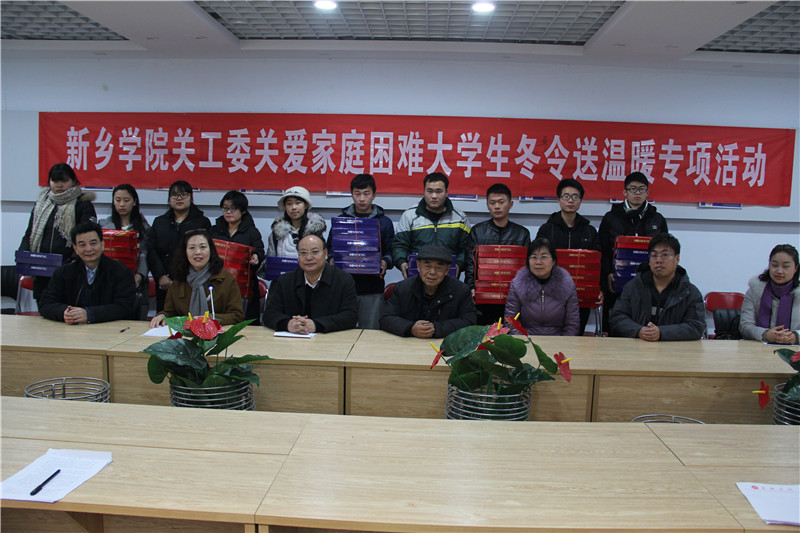最后,党委副书记、关工委主任杨士斌,关工委常务副主任马国良、离退处处长刘芮珺及受助院系领导,为受助大学生发放了保暖内衣等物品。