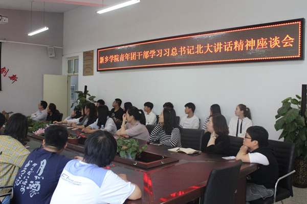 5月3日上午,校团委组织青年师生集中观看了习总书记北大视察视频,认真学习了习总书记的重要讲话精神,并进行了座谈。校团委全体教师、各学院团干教师及主要学生干部参会。校团委书记苏辉主持。