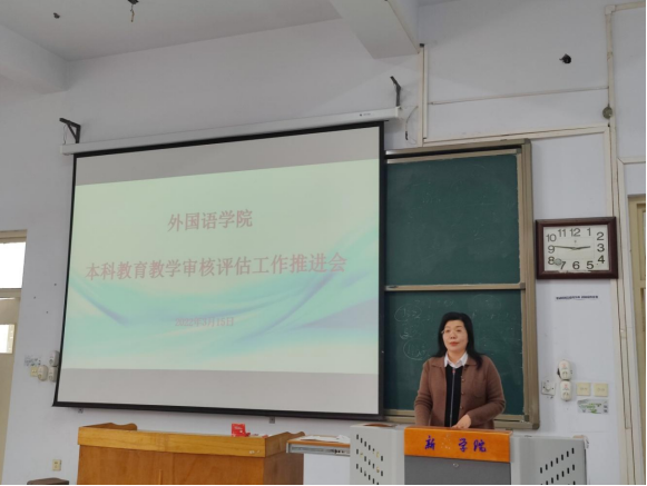 为顺利迎接本科教育教学审核评估工作,3月15日下午,外国语学院在A11-422召开本科教育教学审核评估工作推进会。党委书记田大治、院长李艳叶、副书记武敏、副院长王红梅、朱瑶瑶以及全体教师参加推进会。会议由院长李艳叶教授主持。
