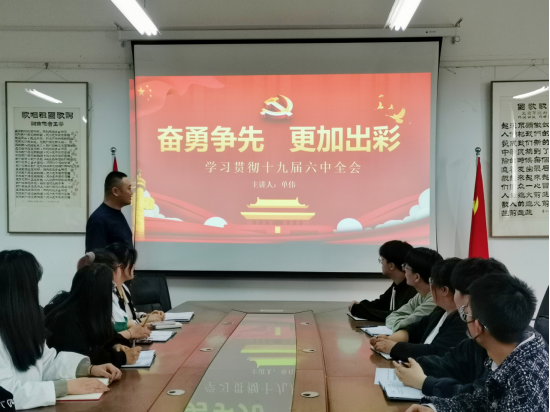 3月11日,美术学院副院长单伟在A10二楼会议室为学生党员宣讲了党的十九届六中全会报告精神。单伟指出,百年历程中积累的宝贵精神财富,是坚定理想信念、校正价值追求、铸牢精神支柱的生动教材,同学们要善于从党的实践创造和历史经验中启迪智慧,砥砺品行,做新的赶考路上的青春“追梦人”,用奋斗共绘时代新篇章。