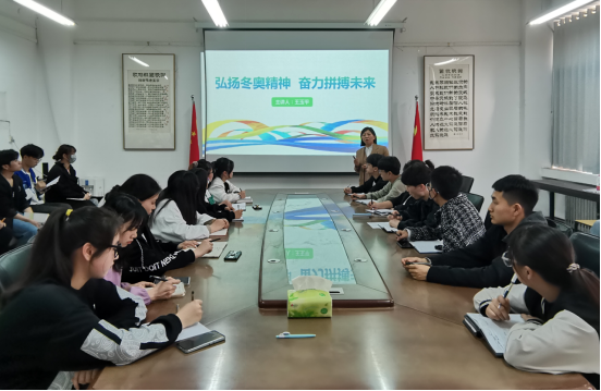 3月8日,美术学院党委副书记王玉平在A10二楼会议室以“弘扬冬奥精神,奋力拼搏未来”为主题开展专题讲座,学院学生干部队伍及学生党员代表参加会议。她寄语同学们从“更高、更快、更强、更团结”的冬奥精神中汲取力量,用坚定的理想信念,用敢打敢拼的实际行动,弘扬冬奥精神,奋力拼搏未来,为祖国的发展贡献力量。