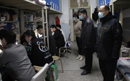 3月21日上午,新闻传播学院党委书记王卫锋、院长马东俊、副院长聂绛雯及辅导员一行进入教研室、网络课堂、宿舍,分别对教师网络教学组织、学生听课情况进行检查、调研。