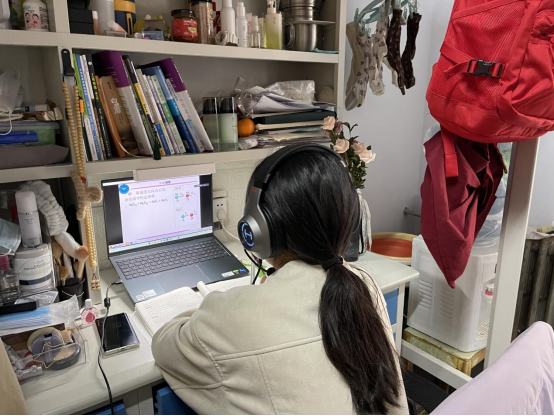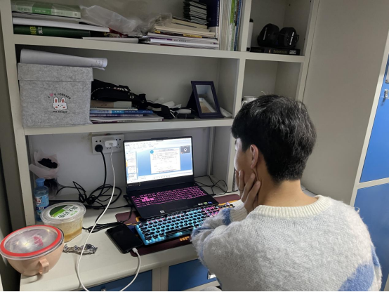 孙爱丽院长、李在林副院长一行,来到D02和D05宿舍,了解学生的学习、生活、上课效果与老师的授课情况,提醒学生按时上网课、做好笔记,注意宿舍卫生与个人疫情防控。从检查结果看,学生们能够按照课程表进行线上上课,上课秩序较好,教师能够利用各种教学平台进行直播授课,同时也注重和学生的互动,保证了线上教学的教学效果和教学质量。