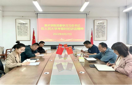为深入学习宣传贯彻习近平总书记在中国人民大学考察时的重要讲话精神,坚持用新思想武装头脑,用新理论指导实践,推动学院“亮身份做表率”主题党日活动向纵深发展,近日,美术学院组织师生通过主题党日、线下自学、分享感悟等多种形式开展“学习重要讲话,强化使命担当”主题活动,在学院掀起学习热潮。