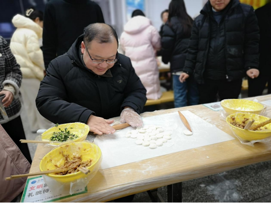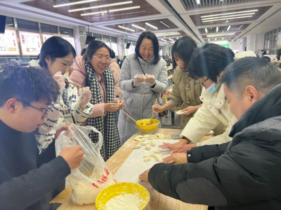 活动进行了擀饺子皮比赛、包饺子比赛、饺子创意赛以及知识问答。活动过程中,学院老师积极参与其中,并手把手指导同学们揉面、擀皮、包饺。经过大家的齐心协力,热气腾腾、香气四溢的水饺终于出锅,学院师生们围坐在一起共叙家常、互致祝福,共享努力成果,现场气氛浓厚、热情高涨,令身处异乡的同学们增进了对中国传统文化的理解,感受到了来自学院大家庭的温暖。
