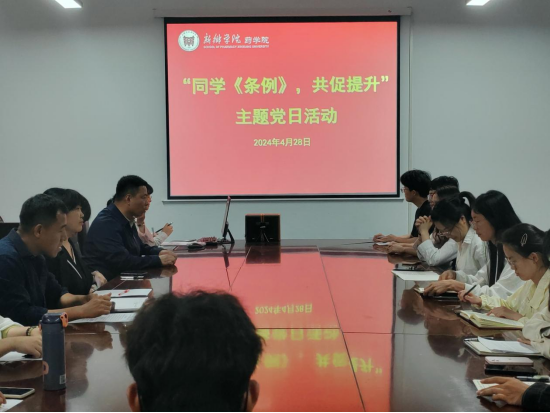 为学习贯彻习近平总书记关于党纪学习教育的重要讲话和重要指示精神,贯彻落实学校党委关于开展党纪学习教育的工作要求,4月28日,药学院教师党支部和学生党支部联合开展“同学《条例》、共促提升”主题党日活动,集体学习研讨新修订的《中国共产党纪律处分条例》(以下简称《条例》)。教师党支部书记丰贵鹏主持学习,学生党支部书记李辉、教师党支部委员会全体委员和学生党支部骨干代表参加学习并进行了交流研讨。