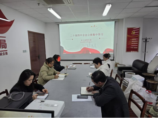 在全校深入学习党的二十届四中全会精神之际,10月28日下午,审计处在719资料室组织全体员工集中学习《中国共产党第二十届中央委员会第四次全体会议公报》,会议由审计处处长赵素琴主持。